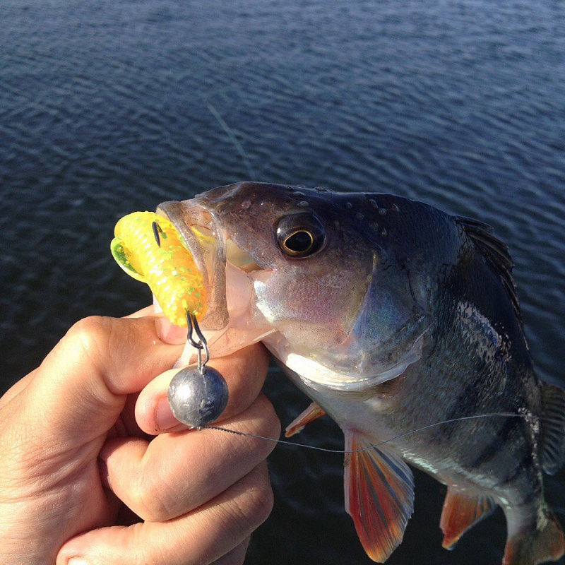 Бонусов не было. Средний вес 2-3 кг. Но стоит и ловится по-летнему! Для нас это стало неким откровением даже. Я всегда считал, что косы островов "умирают" с первыми же холодами. Оказалось, Сызрань исключение. Много не поймали. За все дни тренировок лишь четыре щуки. Ну и несколько окуней, вроде этого на твистер Релакс: