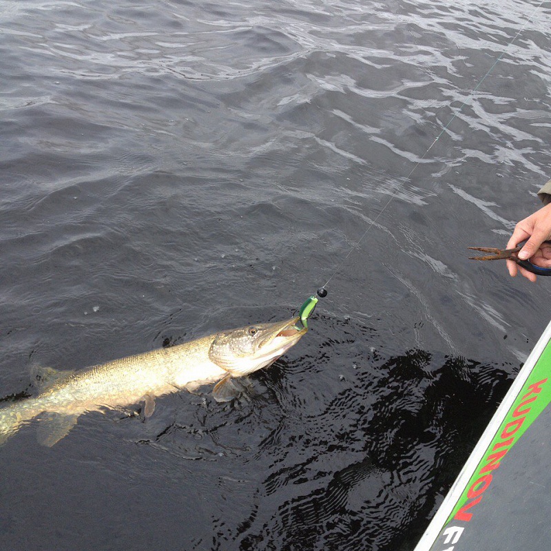 Но рыбу мы нашли и поняли. С утра несемся на найденный участок. Он абсолютно "гол" в структурнике - нет ни рыбы, ни бели, ни структур. есть только голодные щуки. За полтора часа сравнительно несложно закрываемся на уровне 18 кг. Сегодня бонус у Василия - щука на 5800.