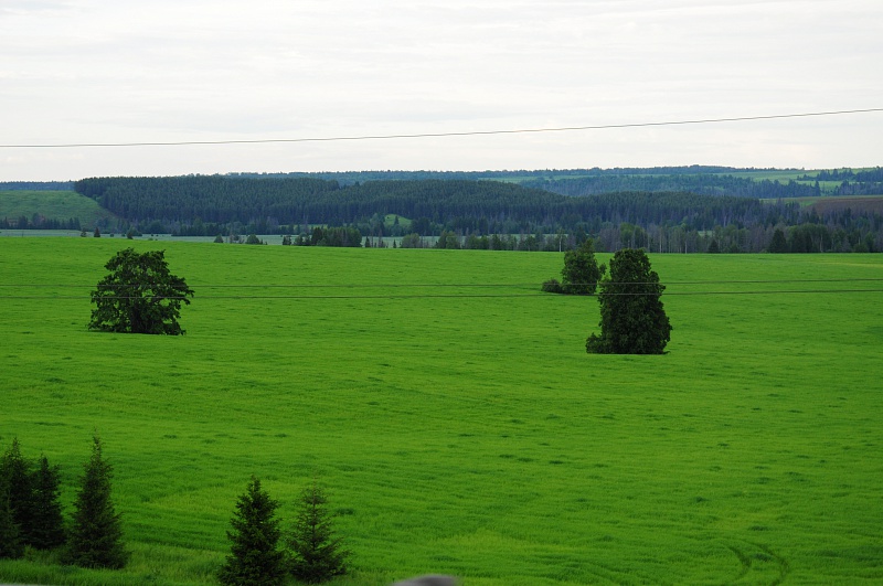 Чем ближе мы подъезжали к Каме, тем красивее и удивительнее становилась природа. Мои неумелые фотографии не могут полноценно передать красоту изумрудных лугов и покрытых лесом холмов этого края.