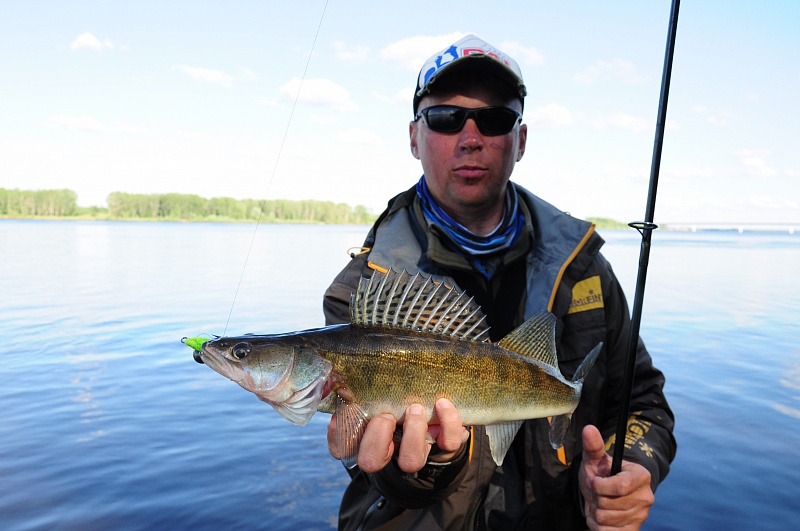 Меням постановки, и с каждой ловим. Но средний размер не очень. Все надежды на полуденный выход. И он не подвел - я ловлю неплохую щучку, а через несколько минут Василий заводит в подсак "затрешку". Укрупнились неплохо, но пойманных семи килограммов все равно мало для высокого места. Мы поймали больше двух десятков щук, но при длине 48-50 сантиметров в среднем они весили 600-700 граммов. Ну никак не хотят жирнеть на сильном камском течении:) По пути на финиш заскочили на одну русловую "бонусную" точку. Василий проверял джигом, а я крупной колебалкой. Свет в конце тоннеля призрачно мелькнул, в виде мощнейшей хватки в стиле "отдай спиннинг", но мгновенно потух, вместе с провисшим шнуром. Срез вместе с поводком. Бывает. Знатная морда, видать, была... Мы шестые.