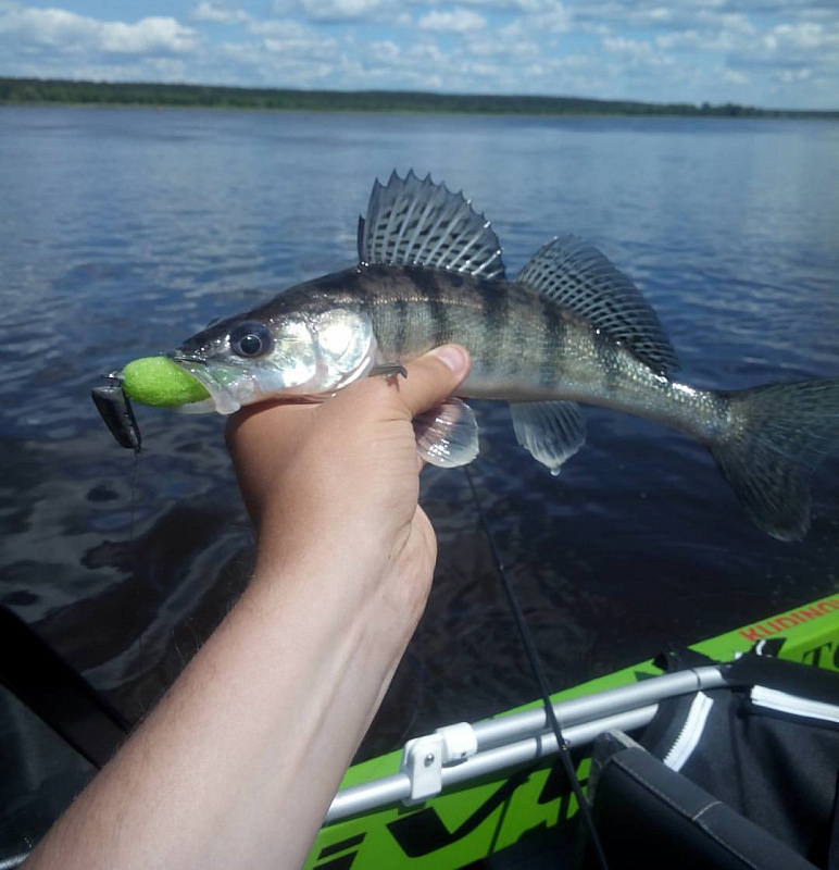 Вообще, камская рыбка оказалась довольно избирательной и привередливой. Особенно интересными оказывались эксперименты с цветами приманок. Рыбе явно нравились оттенки зеленого. Цвета нашего катера: