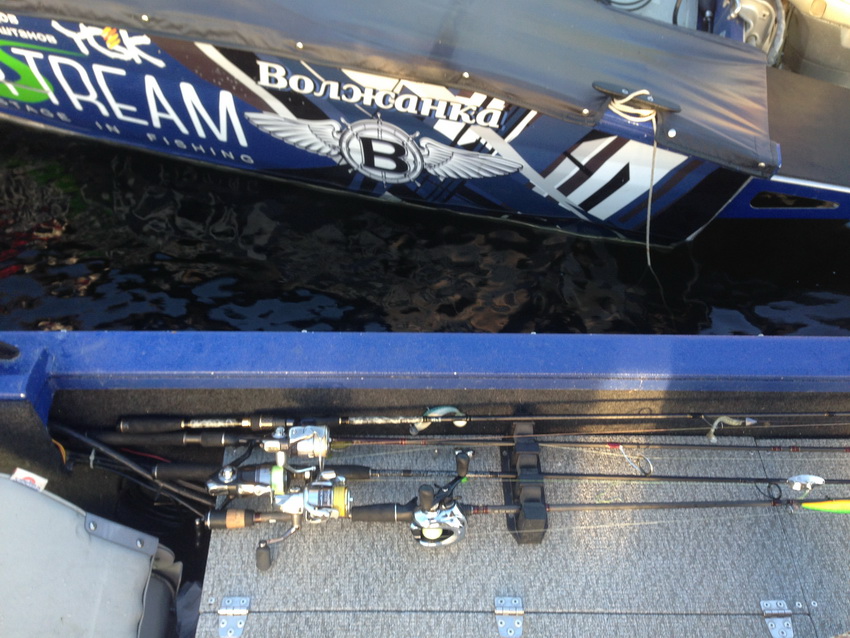 Несколько раз мы еще подходили к береговой линии в поисках щуки, но безрезультатно. А в час дня тренировка закончилась, все лодки собрались у причалов. В разговорах звучала напряженная нотка, многие были озабочены ситуацией с рыбой. В ходе совещания нашей команды выяснилось, что все активные места составили несколько обширных пятен в верхней зоне водохранилища. Начались последние приготовления. Спиннинги мы решили не менять, нас с Василием в данных условиях целиком и полностью устраивали Norstream Gravity, Provokator и Spiker, которые хорошо справлялись с ловлей в коряжнике, сдерживая рывки рыбы, не давая ей достичь укрытия и допуская ее форсированное вытаскивание. «Динамики», 682-й и 762-й, стояли в пирамиде для твичевой поддержки в случае отката к щуке.