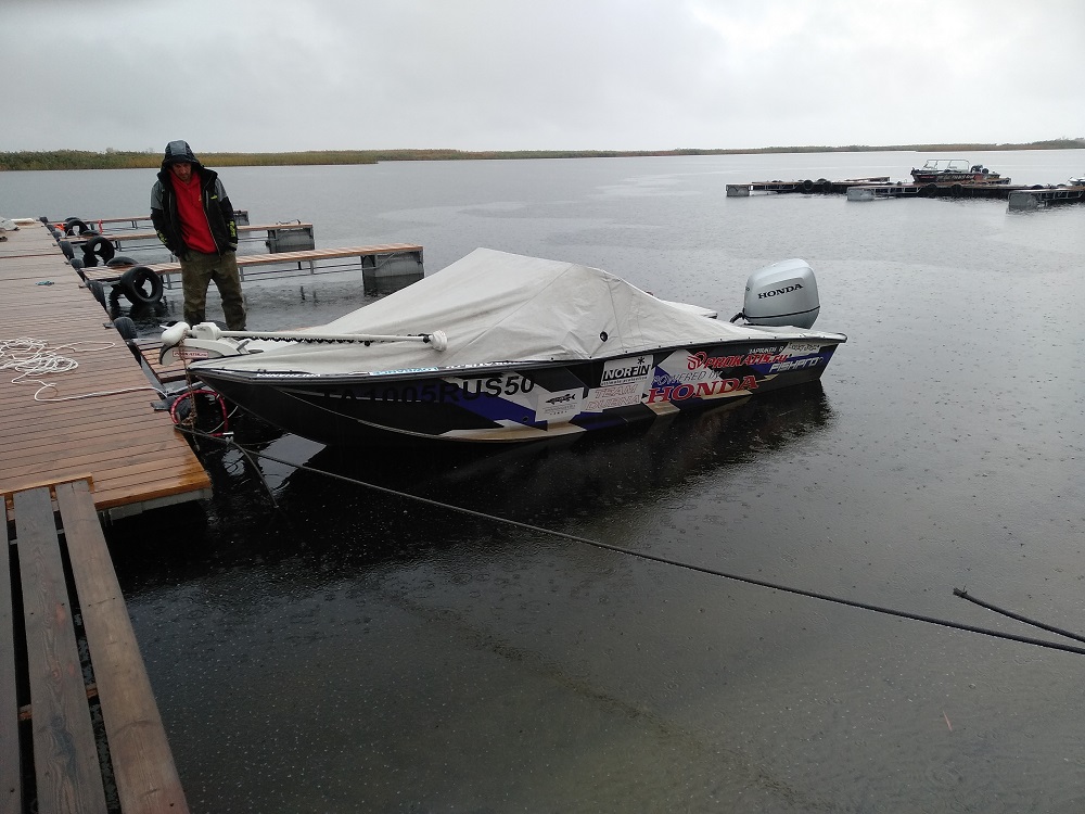 Второй день. Нервозность колосальная. Кофе и чай приводят меня в чувства, я уверен в себе. Колян всегда уверен в себе.)) План на сегодня закрыться 5 рыбами. Ветер сегодня еще сильней. Стартуем мы сегодня в конце и сдаемся так же. Старт- летим на свою точку, смотрю, летит Волчков на своей огромной тундре и он точно не свернет, а может он нас не видит. Предлагаю его пропустить, наша точка рядом. Всё разошлись. Первая, вторая , третья постановки - полный болт. Ветер нагоняет жуткую волну. Решаем идти в «ботву», 5 минут и мы на нашей траве. Ба, а что это за лодочка на другом конце травы? -Шабалин! Мы чешим траву с одного конца он с немного другую траву, через глубокое русло. Поклевок нету, теряем время на не тронутую траву, вода прозрачная и видим несколько щук упертых носом в ботву. Получаем два не зачета. ловля будет отчаянной - мегатрудовой. Возвращение на родную делянку принесло двух зачетных щук мне на Магалон натурального цвета.