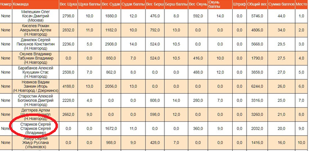 На финиш пришли с двумя видами рыб. Судаком и окунем. Еще раз убедился в своем предположении-как ловишь на тренировках, так и в туре. На тренировке судак и окунь. И в туре так-же. Попали в десятку (9-ое место).