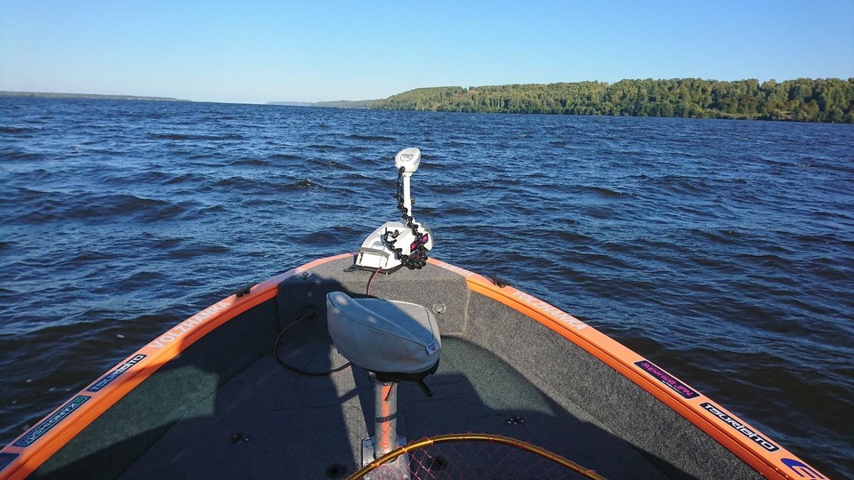 В общем, уверенность в превосходных мореходных качествах «Волжанки LF PRO 54» и безотказной работе ПЛМ YAMAHA 175 AETL позволяют нам на тренировке сходить к Юрино (25 км от старта), проверить старые наработки. На одной из постановок Вадим ловит судачка, у меня сход около лодки крупного окуня.