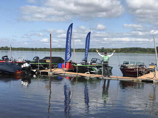 Лодочка наша Волжанка 50 FishPro, как ни странно, практически не заметила нахождения в ней дополнительного человека. Правда, организаторы сжалились и направили к нам самого жилистого и малогабаритного.