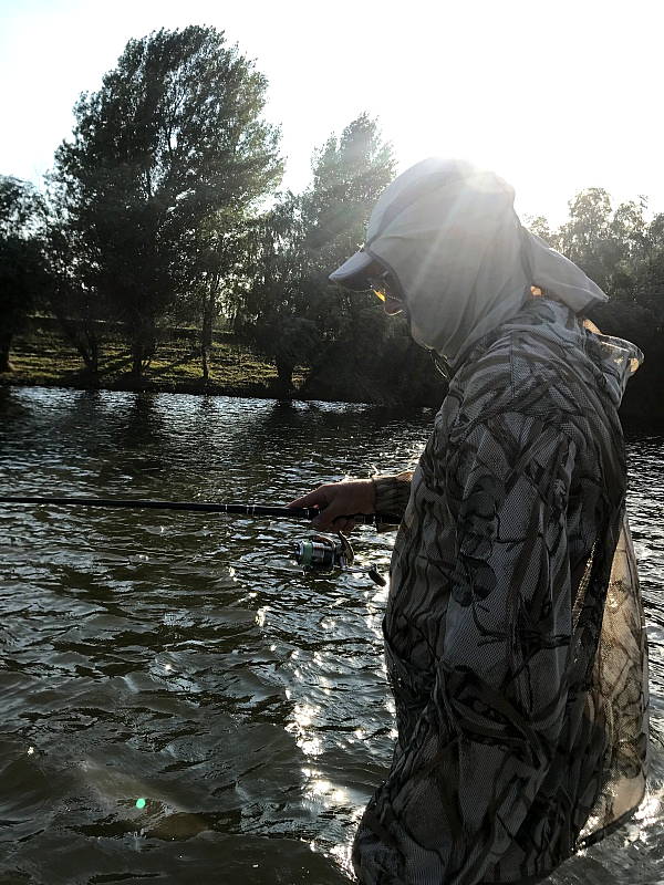 И опять в голове не повернулось гонять здесь поверхностники. Сместились еще ниже. По карте - прижим к бровке. Немного порисовав, поняли, что перекат с изюминкой, и налицо - поперечная канавка. Наши догадки подтвердил жерешок, лупящий малька в прилегающих завалах бревен. Не думая положил старый добрый кастмастер под самое бревнышко, мгновенная атака - и такой желанный «жорик» под двушечку стал испытывать на слабость мою снасть.