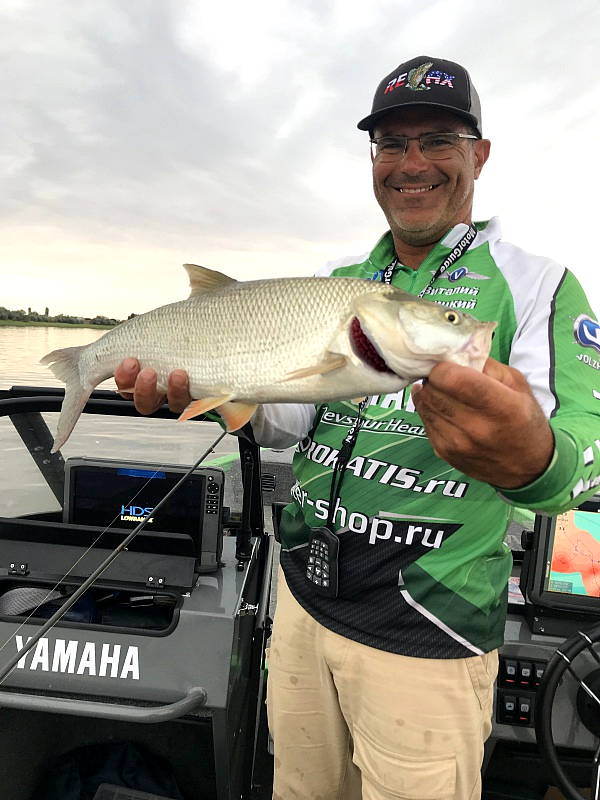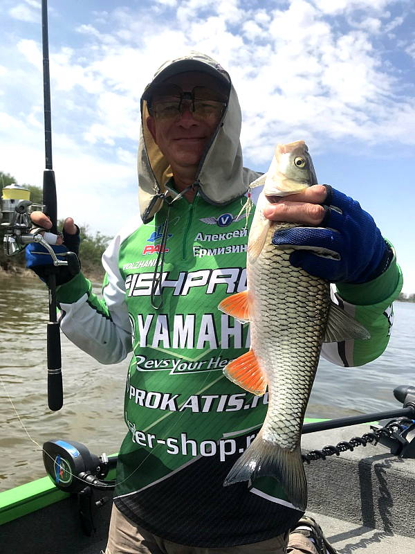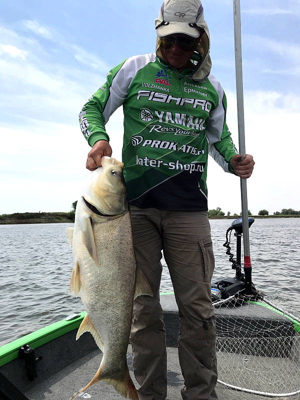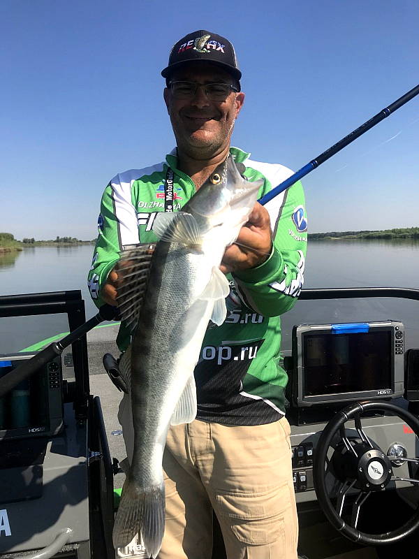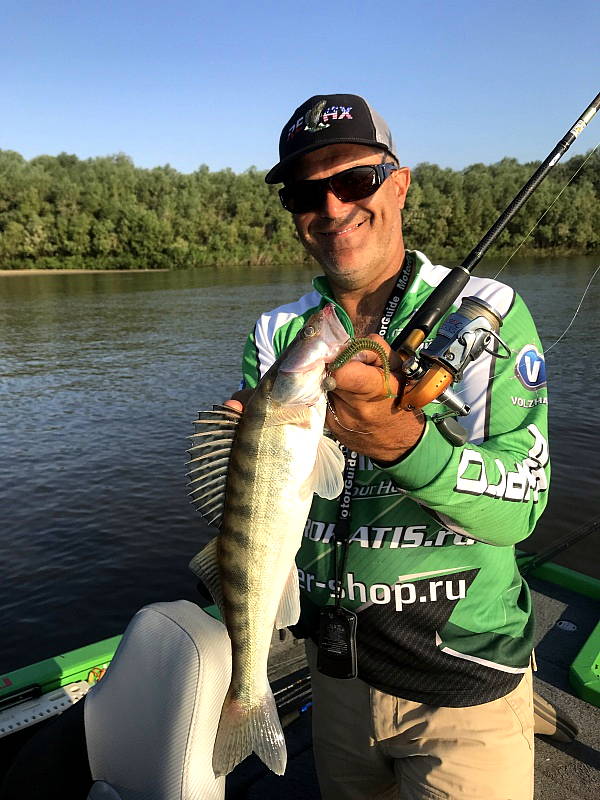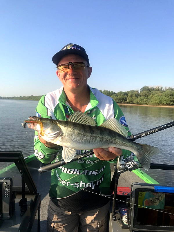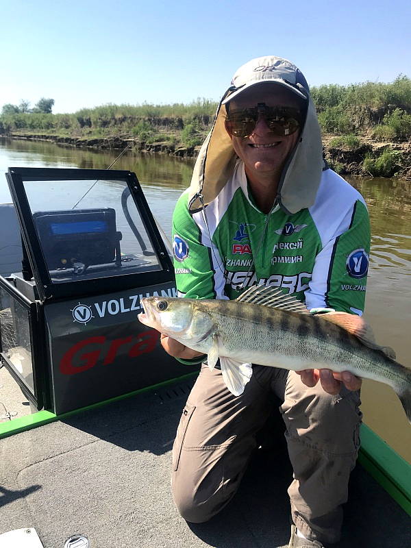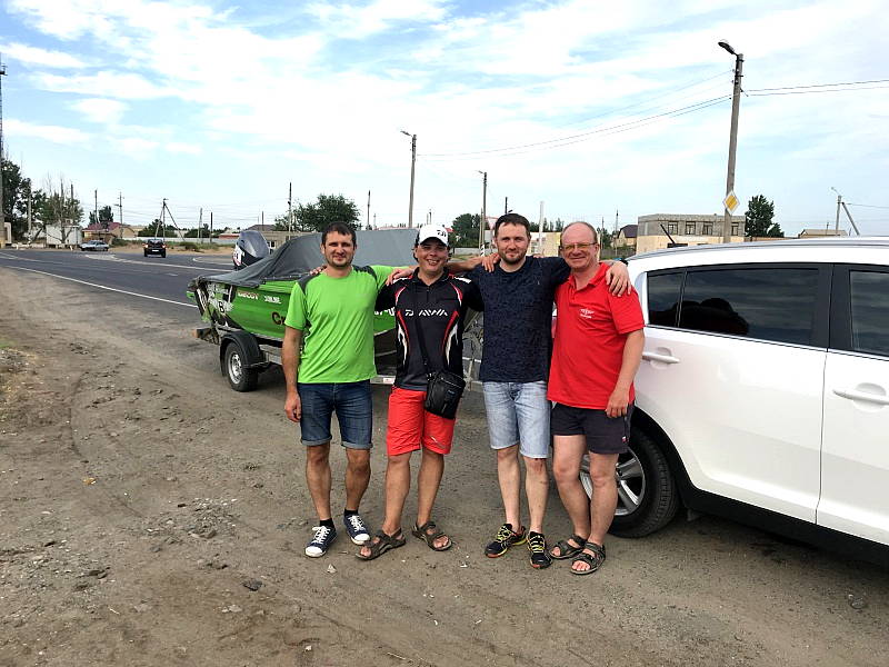 От жары под полтинник на солнце с непривычки перехватывало дыхание. Наши раскаленные Волжанки (5.0 ФишПро и 46 ЛегендФиш), казалось, с радостью встретились с водами астраханской Волги.