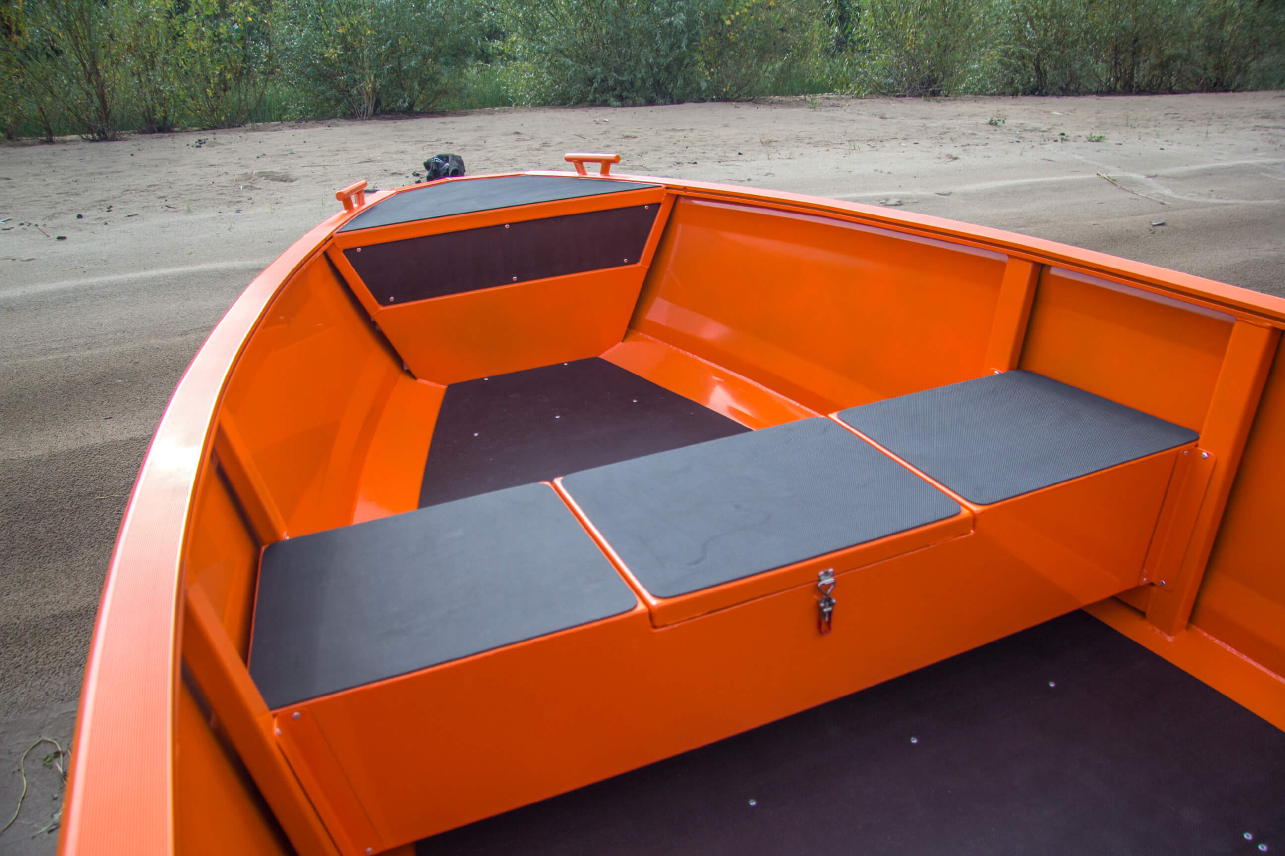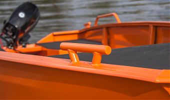 Ковролин на лодках профессиональной серии FishPro должен быть не только устойчивым к влажности и ультрафиолету, но и иметь специальную структуру, не позволяющую острым рыболовным крючкам цепляться за него.