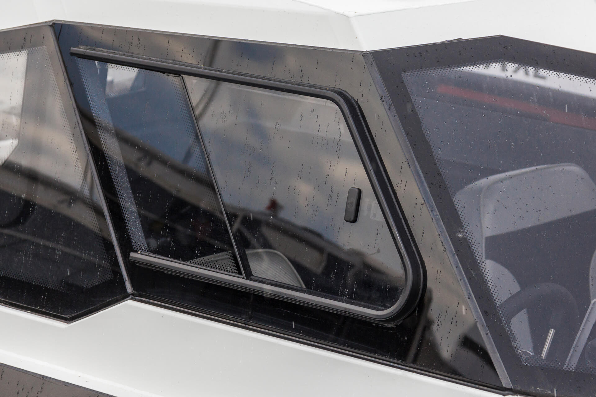 - Форточки сдвижные в боковых закаленных стёклах