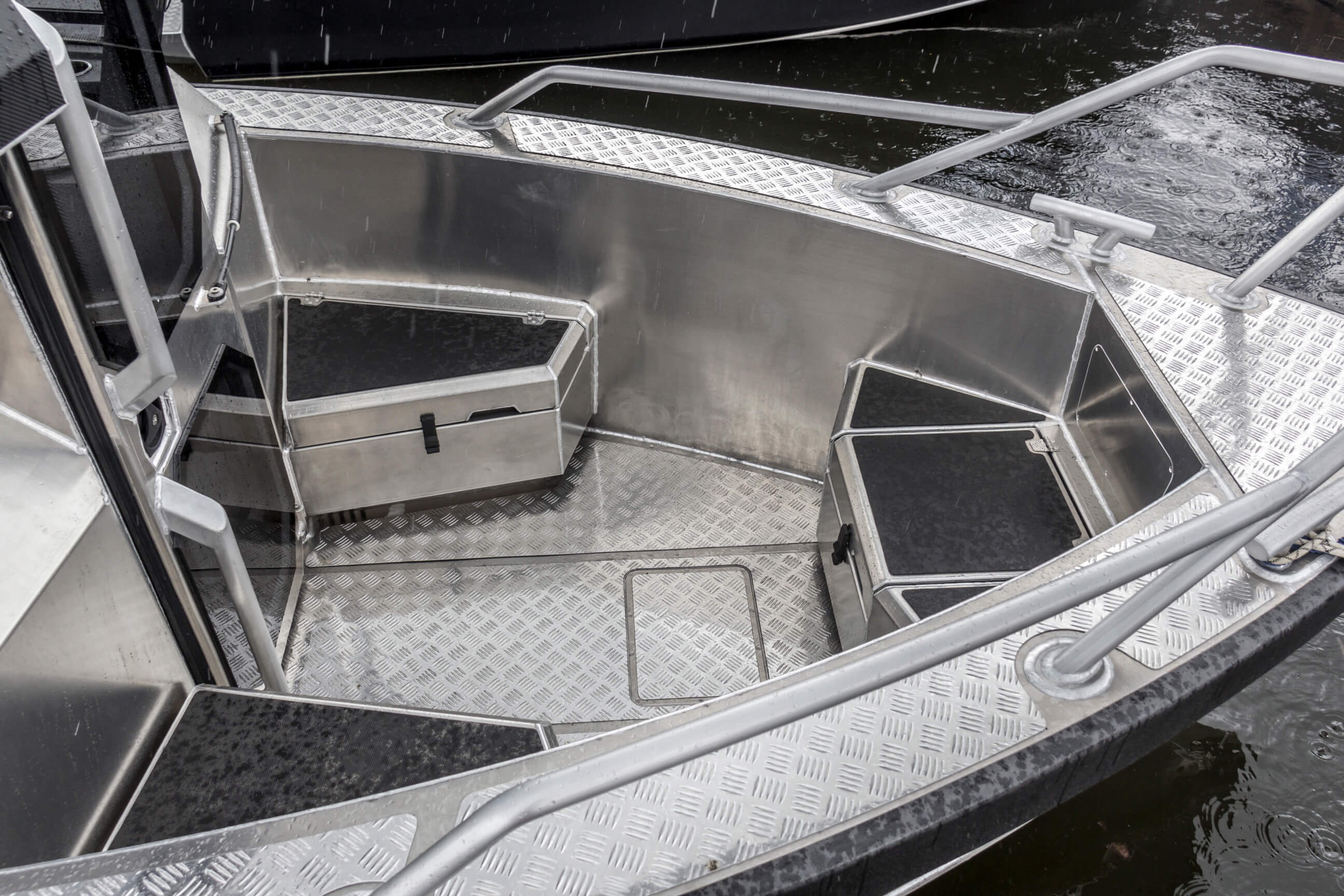 - Кормовой рундук-ступень по левому борту с возможностью установки лебедки