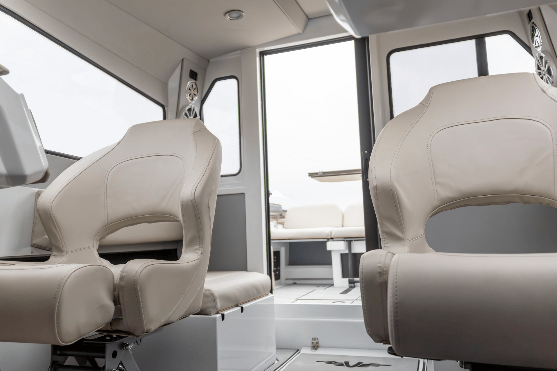 - Отделка морскими материалами сидений и салона бежевого цвета